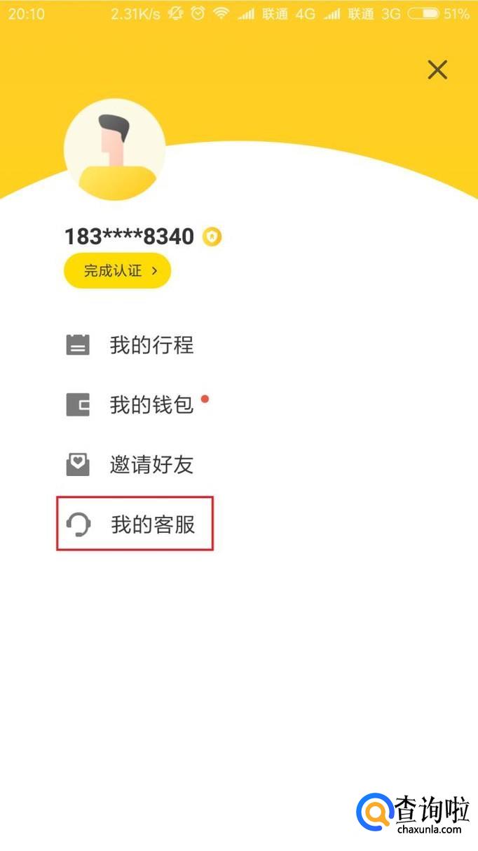 点击进入个人中心页面以后,选择“我的客服”菜单选项。