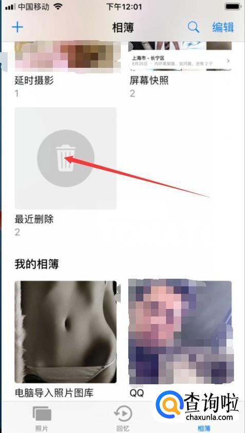 点击“相簿”,找到最近删除的文件夹,只要没有永久删除都能恢复的,如图。
