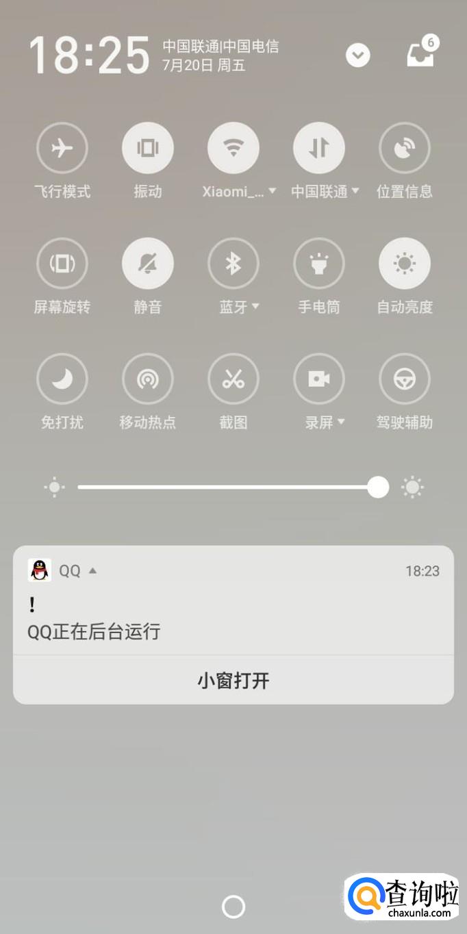 解锁手机进入主界面,下滑屏幕呼出手机通知栏。