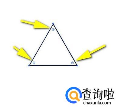 点击确定。即时,在画板中自动画出一个三角形。接着,按下A键,调出直接选择工具。这时,三角形三个角内侧显示出三个小圆。