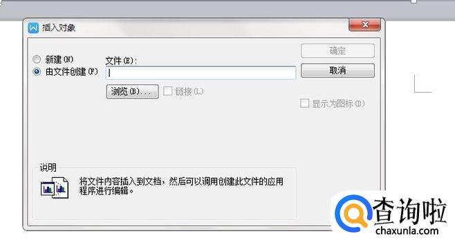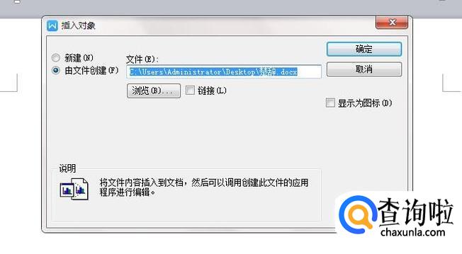 选择完成后,点击“确定”,如图可以看到word中已经插入了文件对象。
