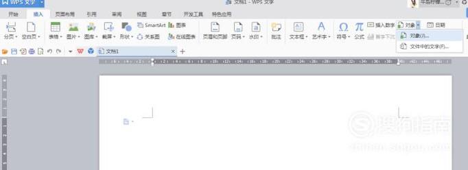 在“插入”里面找到如图的“对象——对象”点击。