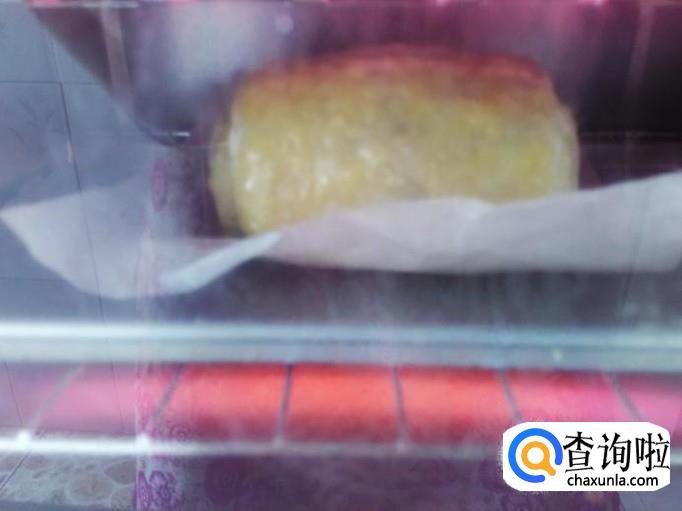 卷好后刷上一层香油,放到烤盘放置烤箱,温度调至180度,烤25分钟左右。