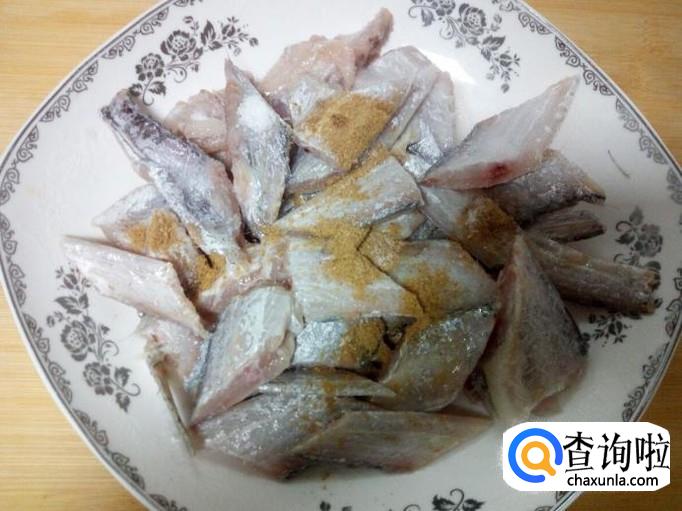 刀鱼收拾清洗干净,控干水分,切成小段。放入少许盐,五香粉,料酒,腌制20分钟。