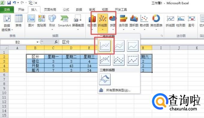 然后我们点击折线图的下拉箭头,之后我们点击选择第一个;