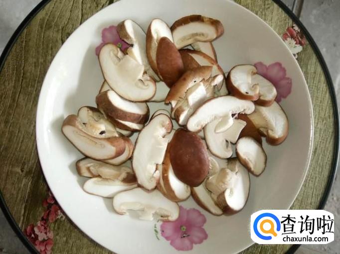 取八九个鲜香菇,将鲜香菇清洗干净,然后竖刀切成小块,一个切成四五片即可;