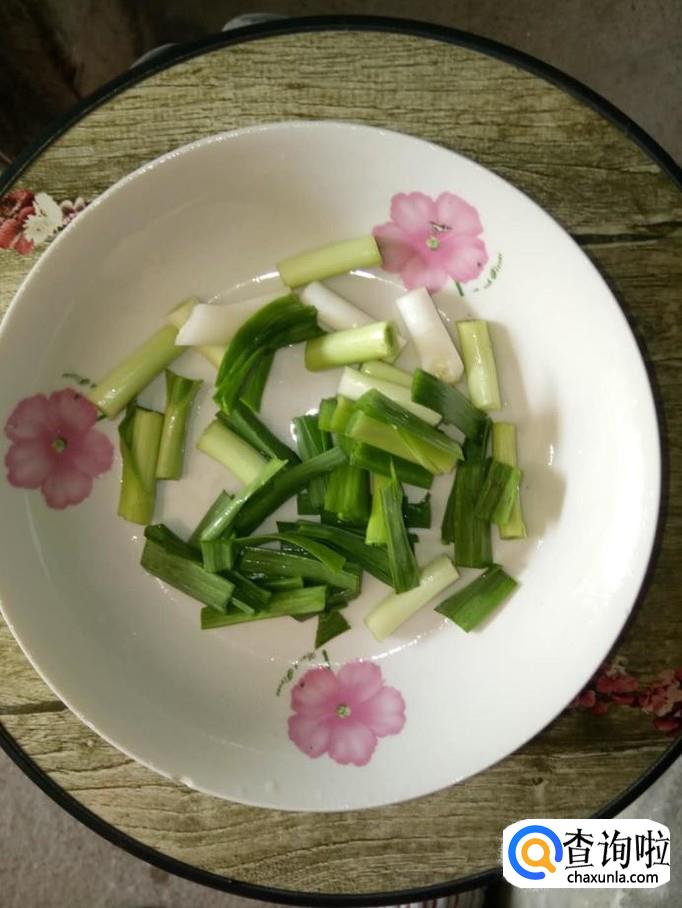 取两三棵蒜苗,将蒜苗清洗干净,切成段状;