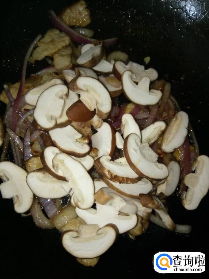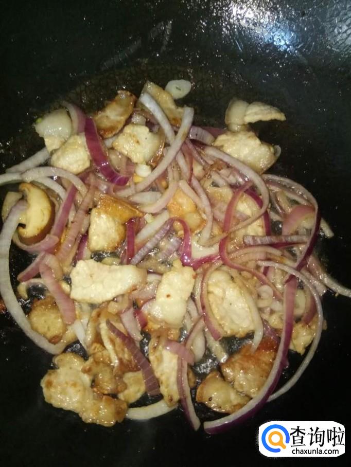 材料:洋葱 五花肉 香菇 蒜苗 郫县豆瓣酱 盐 鸡精 味极鲜酱油 食用油