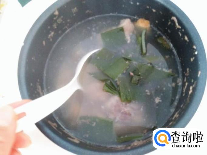 排骨煮好之后,把海带放进去,盖上盖子煲五到十分钟。