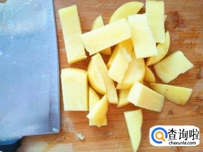 趁着功夫,一个土豆去皮清洗干净,切成长条。
