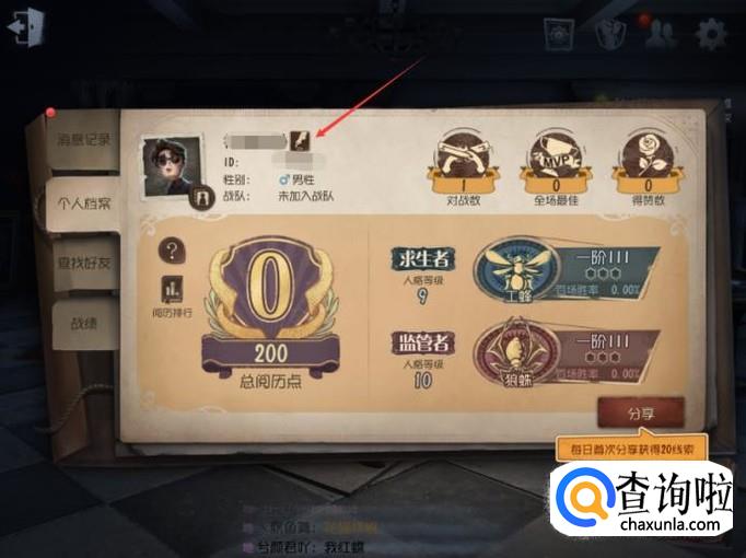 进入到【个人档案】页面后,接着再点击角色名字右侧的那个图标。