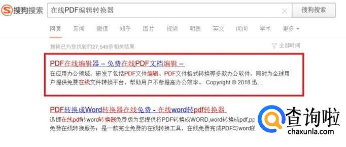 首先,使用搜索引擎搜索“在线PDF文件编辑转换器”关键字,在搜索结果页面中,点击打开在线转换网站。