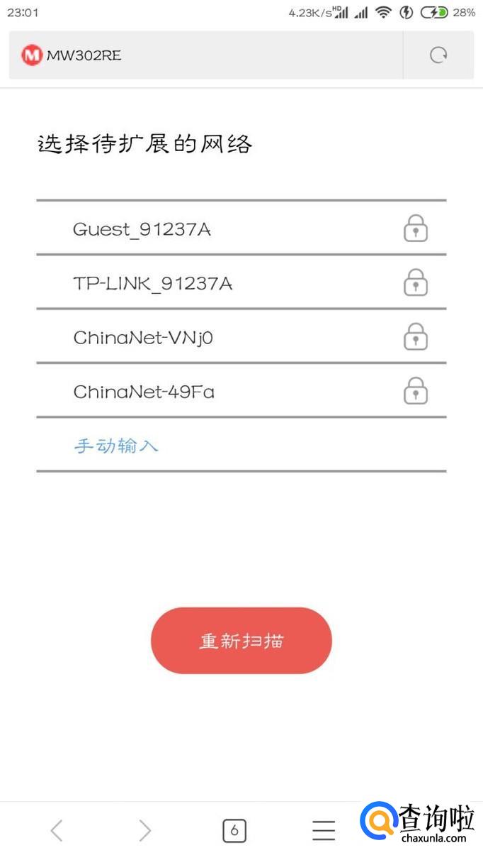 找好自家的WiFi,如果暂时没有的话就要调整扩展器的位置了,说明信号不好。
