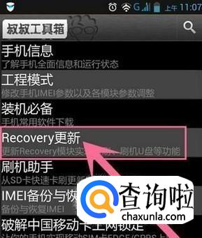 开机的同时按住电源键和音量键,然后就会出现一个菜单栏,选择上面的recovery模式,点击进入。