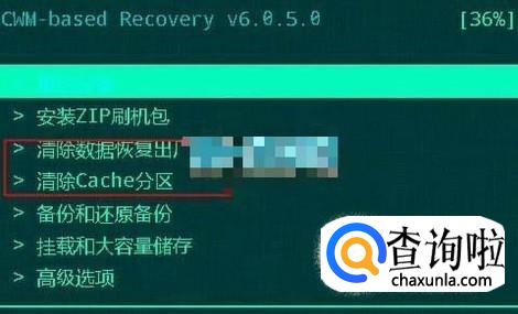 然后选择清空并恢复出厂设置,确认删除所有数据,再回到主页面,选择cache和清空cache数据。