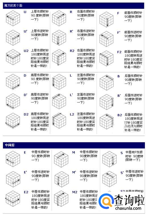 学习魔方首先就要搞清它的以上结构,知道角块只能和角块换位,棱块只能和棱块换位,中心块不能移动。国际魔方标准色为:上黄-下白,前蓝-后绿,左橙-右红。