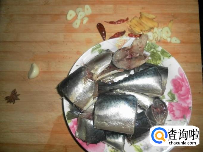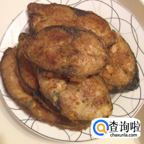 鲐鲅鱼洗干净切成块,加入盐和料酒腌制15分钟,在淀粉上滚一圈使鱼均匀的粘上淀粉。