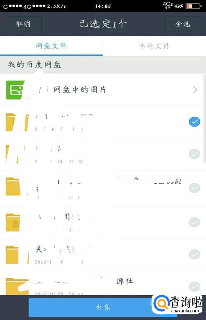 选择我们要分享的文件,点击右边的空白处就可以打勾分享。