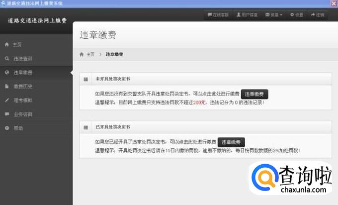 然后按照他给出的处罚信息进行交款,就可以消除违章情况了。