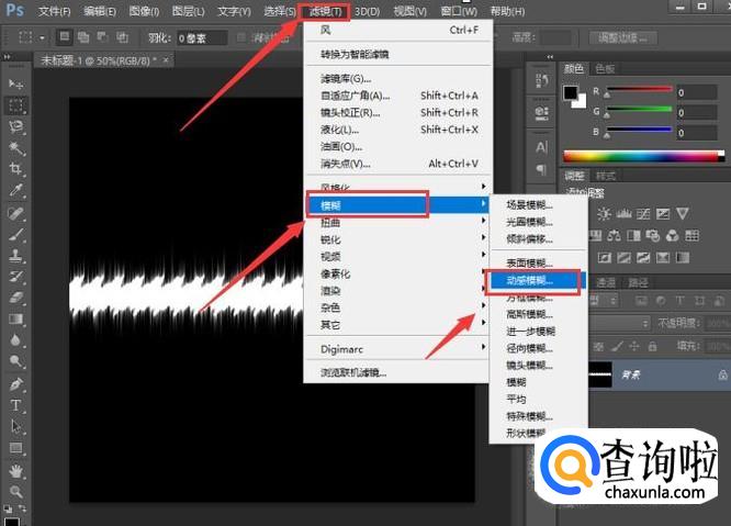 接着选择菜单栏中的“滤镜”,点击模糊中的'动感模糊",将角度设置为90度。