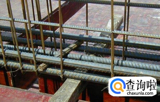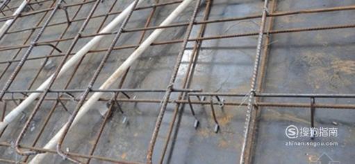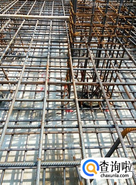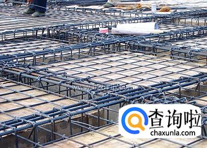 底板或者房屋顶板的钢筋放置顺序。横竖钢筋交叉时,基础板上长跨度的钢筋放置最下面,短跨度的钢筋放置在上面,采用下扎式钢筋扎法。