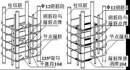 定位箍筋。框架上口设置定位箍筋,用于控制钢筋的移动,定位箍筋分为内箍筋和外箍筋,置于柱顶。