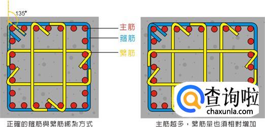 箍筋扎法。主筋必须在折弯处紧密接触,箍筋弯钩处将两根主筋勾住。