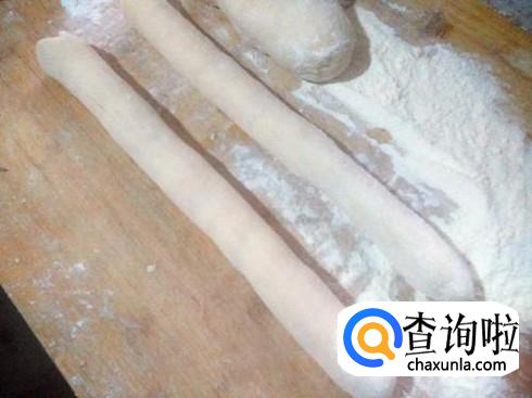 接着就是包饺子的过程了,把面团搓成长条,切成一个个的小面团。