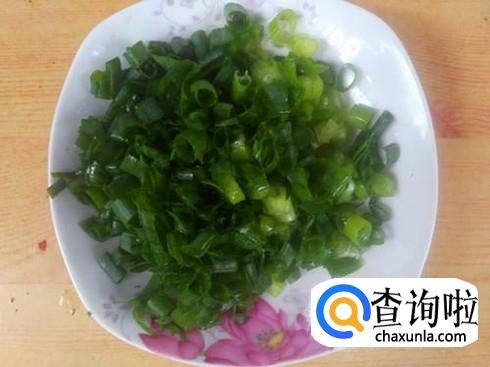 葱切成葱花,韭菜切碎,荤香也切碎。