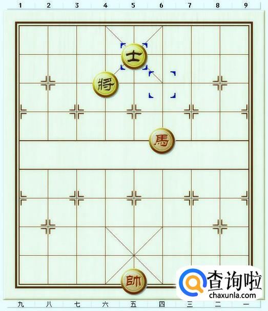 如图所示,红马三退四、黑士6退5。若黑改走将4退1,则红马四进六黑士将无处可逃。