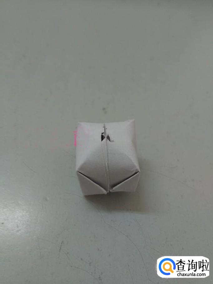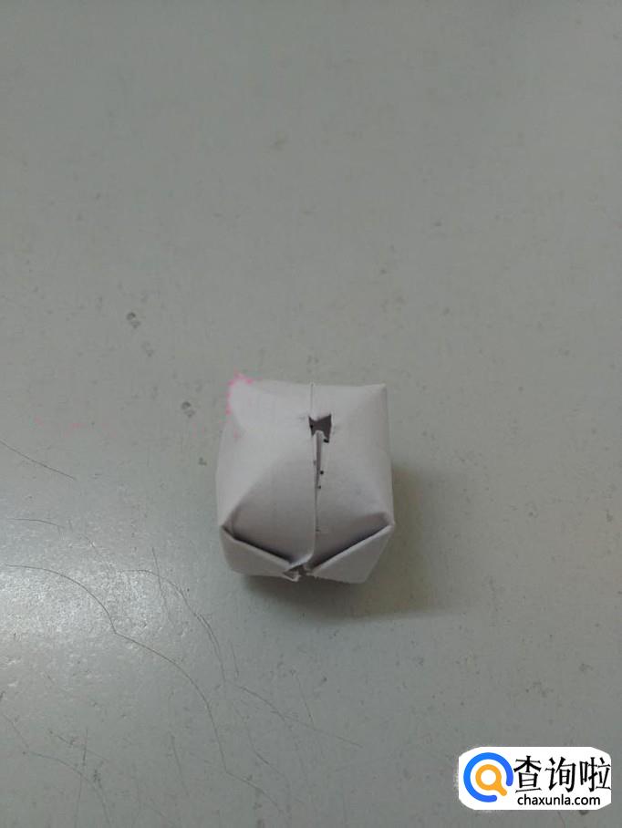 后面两个角也用同样的方法折好,此时顶部有一个小孔。