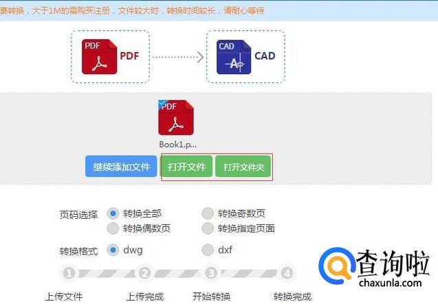 文件转换完成后点击打开文件或者打开文件夹就可以查看CAD文件了