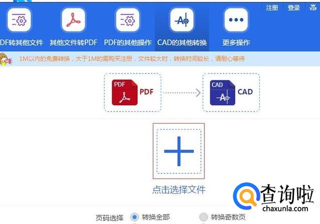 第二种是在线的,进入在线操作界面后。点击文档转换下的CAD转换并点击PDF转CAD选项。