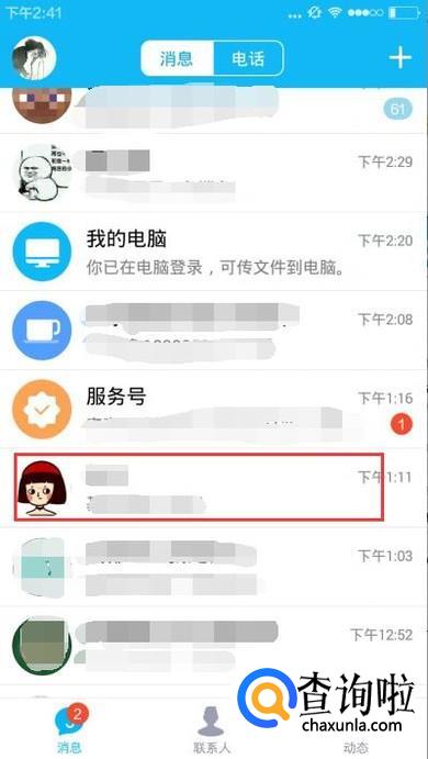 删除单个好友聊天记录:打开QQ面板,点击进入想要删除好友的对话框。