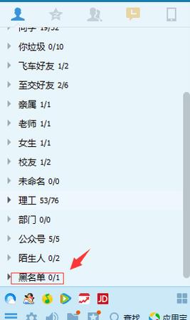 在好友分组里找到黑名单分组。
