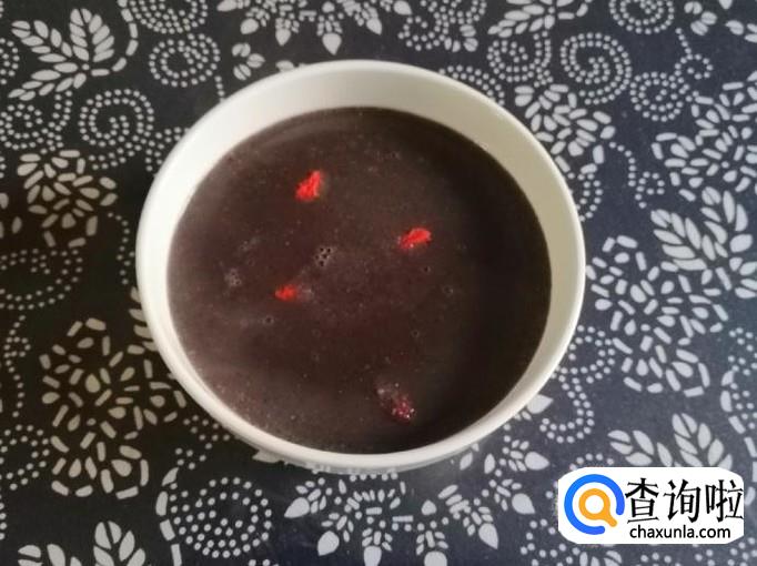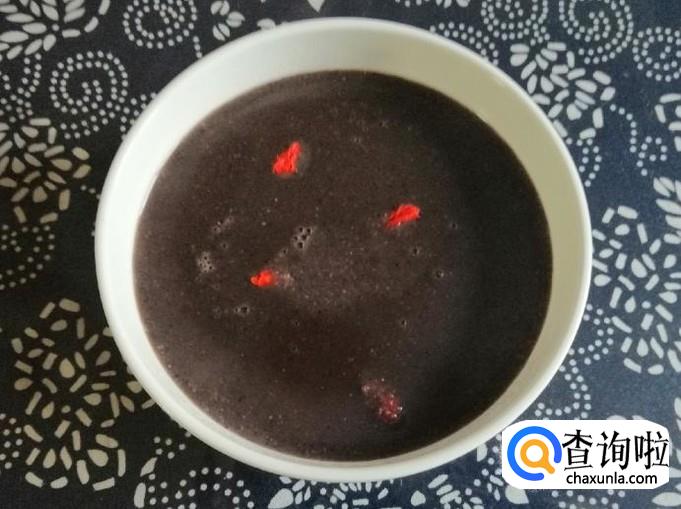 大约二十分钟后,豆浆机发出滴滴声,打浆工作已完成,拔下电源打开豆浆机,如图所示,美味的三黑营养豆浆就做好了,香味扑鼻,把做好的豆浆盛入碗中,稍晾片刻,加入几粒枸杞就可以享受美味了。