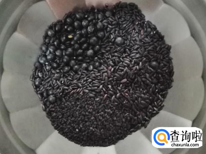 把取好的这三黑食材放入容器中,用清水把食材洗净,用温水泡4个小时左右,泡好后用全自动豆浆机,打浆就可以了。