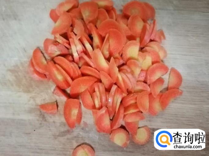 小编比较喜欢胡萝卜,这里我准备了一小根胡萝卜,用清水把胡萝卜洗净,然后把胡萝卜小丁待用。