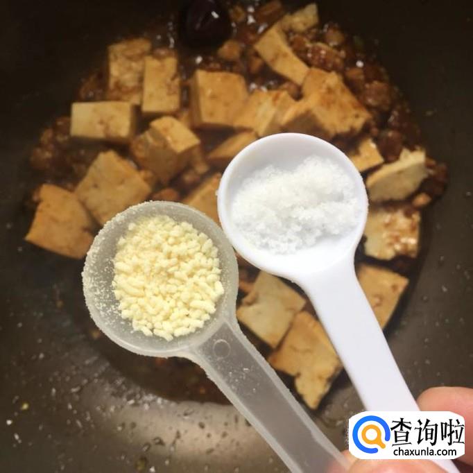 接着往锅中加入一勺的盐巴和一勺的味精,翻炒一分钟。