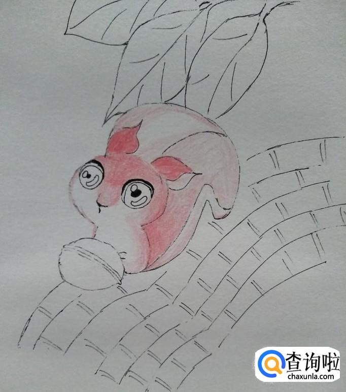 然后我们在脸部适应位置画出小狐狸的眼睛和嘴巴以及鼻子