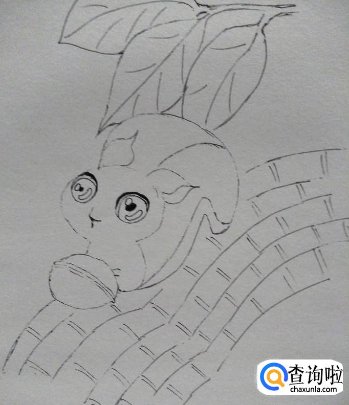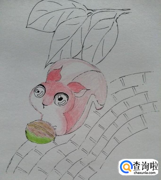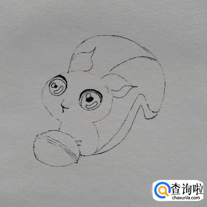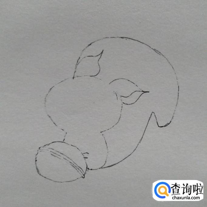 首先,我们用签字笔勾勒一下小狐狸的整个轮廓,在左下方画一个核桃的轮廓