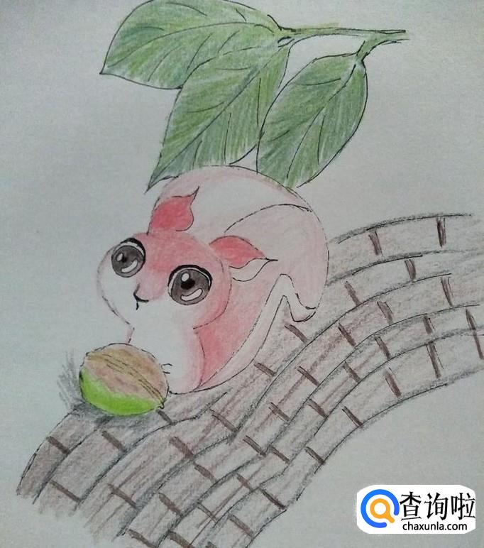 下面的核桃壳涂成青色,核桃仁涂成泥色,并在上面抹上一点点黄色