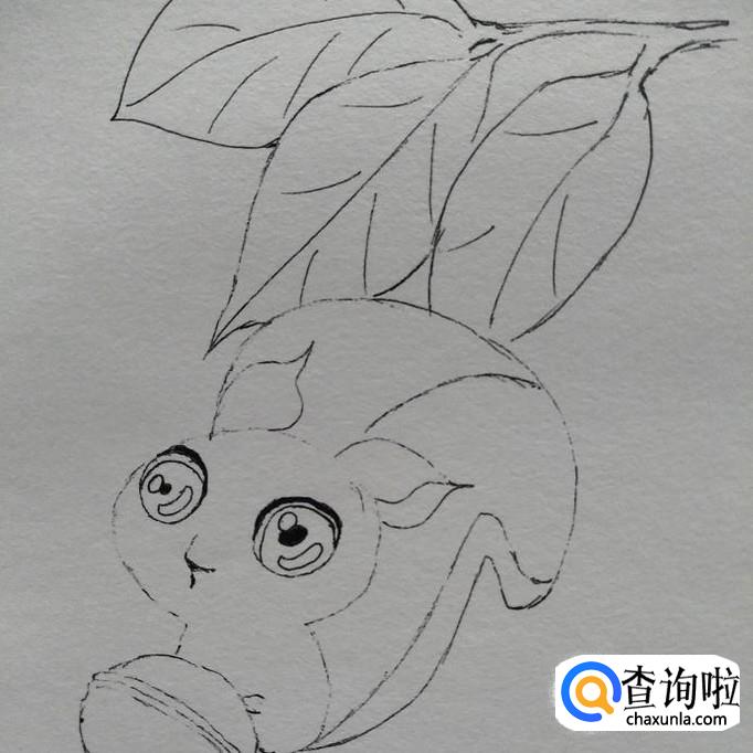 在小狐狸的上面画三片叶子,如下图所示