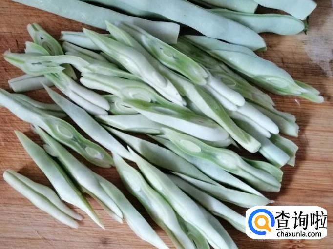 选适量新鲜的芸豆,用清水冲洗一下,怕有农药残留可以用盐水泡一会再冲洗干净,去掉头尾抽丝待用。