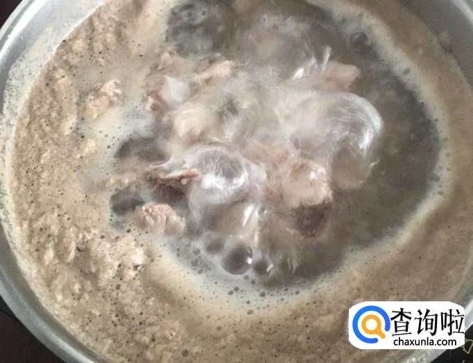 排骨清水洗净后,下冷水锅中煮出血水,再将排骨捞出清洗干净。