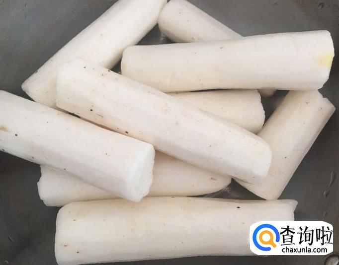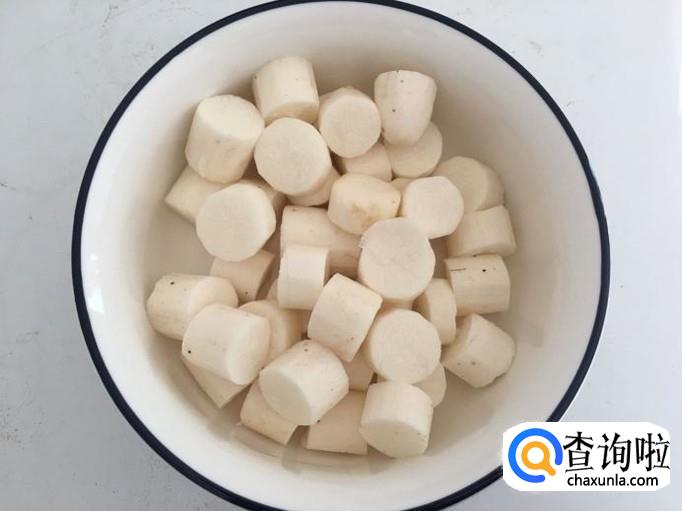 山药削皮洗净后,切成小块。