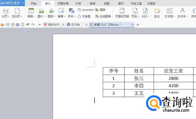 首先,打开一个空白的WPS Word文档,并任意插入一个普通表格做演示用。
