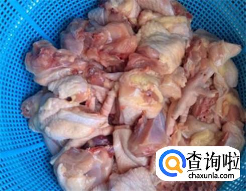 买鸡的时候请老板帮忙剁成小块,回家之后把鸡块倒进水里清洗,让血水都清洗干净。