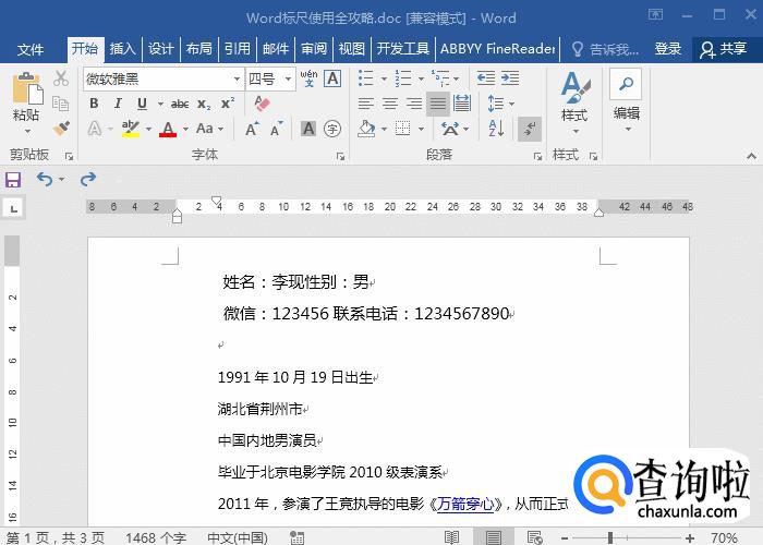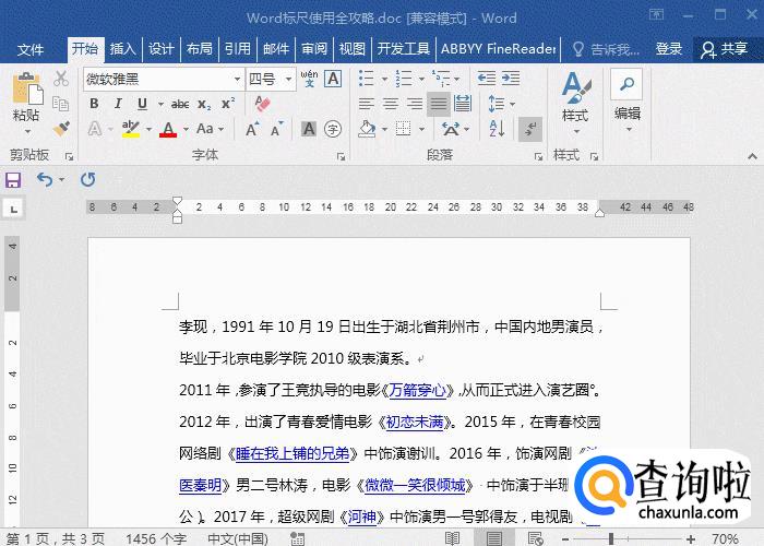 利用标尺的制表符功能,可以快速的实现文字对齐。选中全部内容,将鼠标移动到标尺中间(需对齐的位置)部位,这时候会出现一个“L”形状,就是制表符。将鼠标移动到文字前面,并按下键盘上的【Tab】按钮就可以快速的将内容移动到刚才设置的位置上对齐。