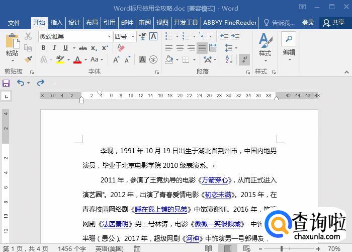 选中全文后,拖动标尺上的“正方形”图标,显示的是【左缩进】,右侧是【右缩进】,拖动就可以设置左右缩进。